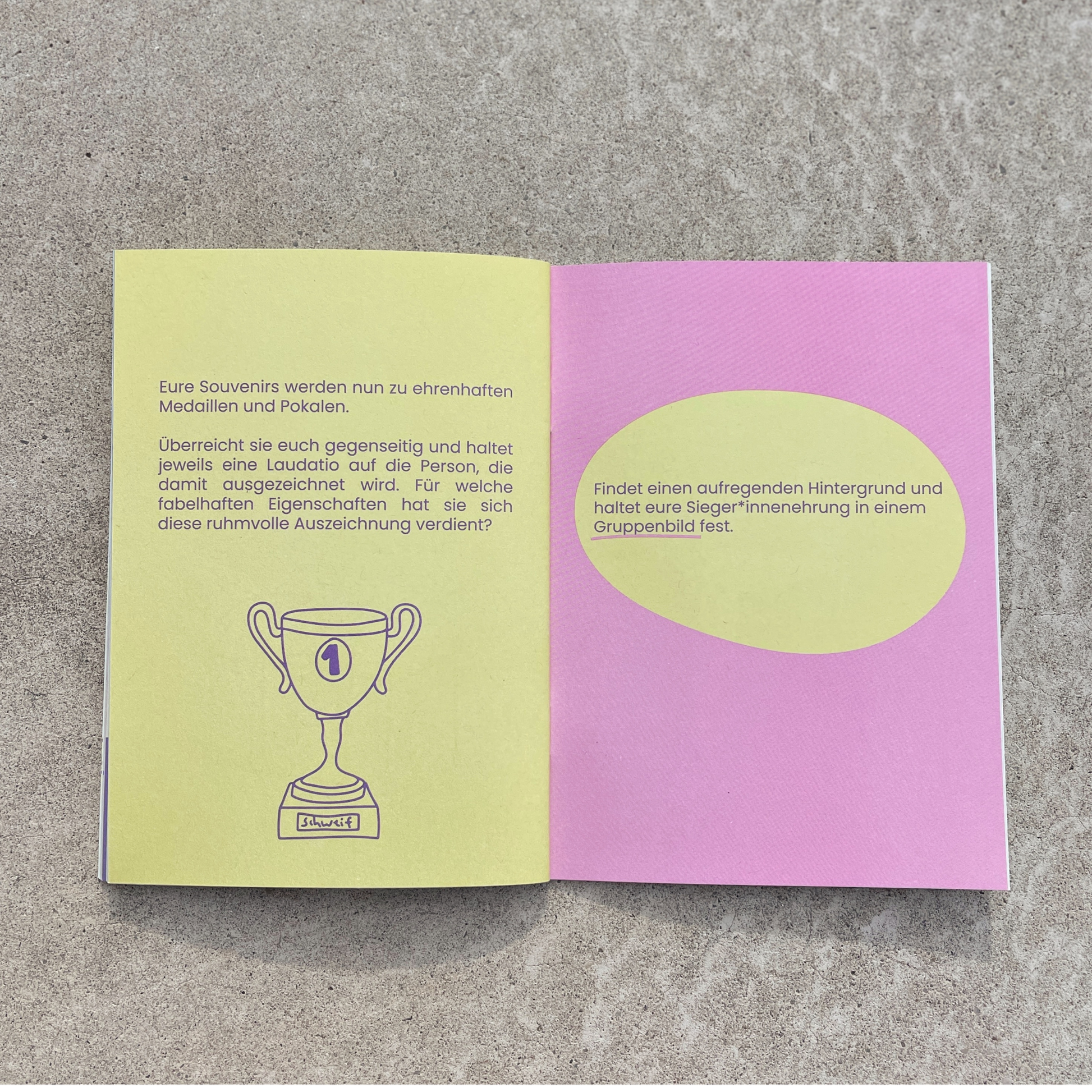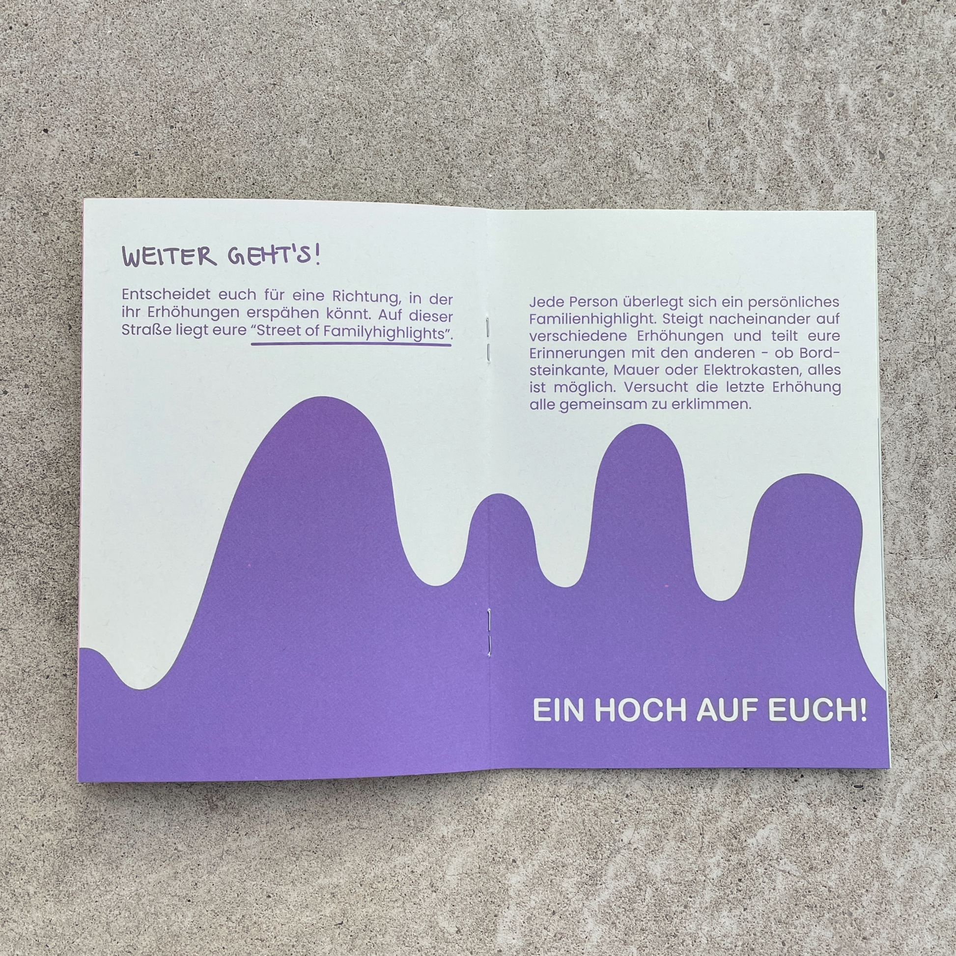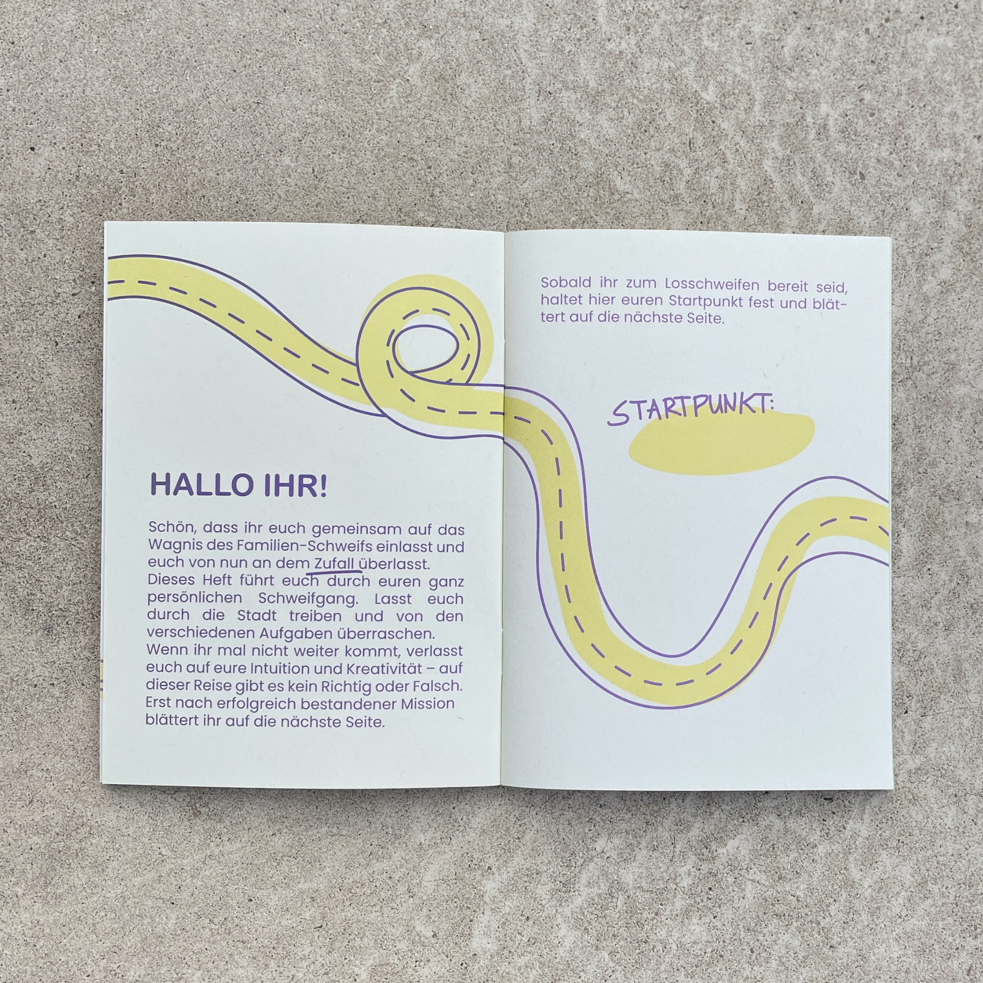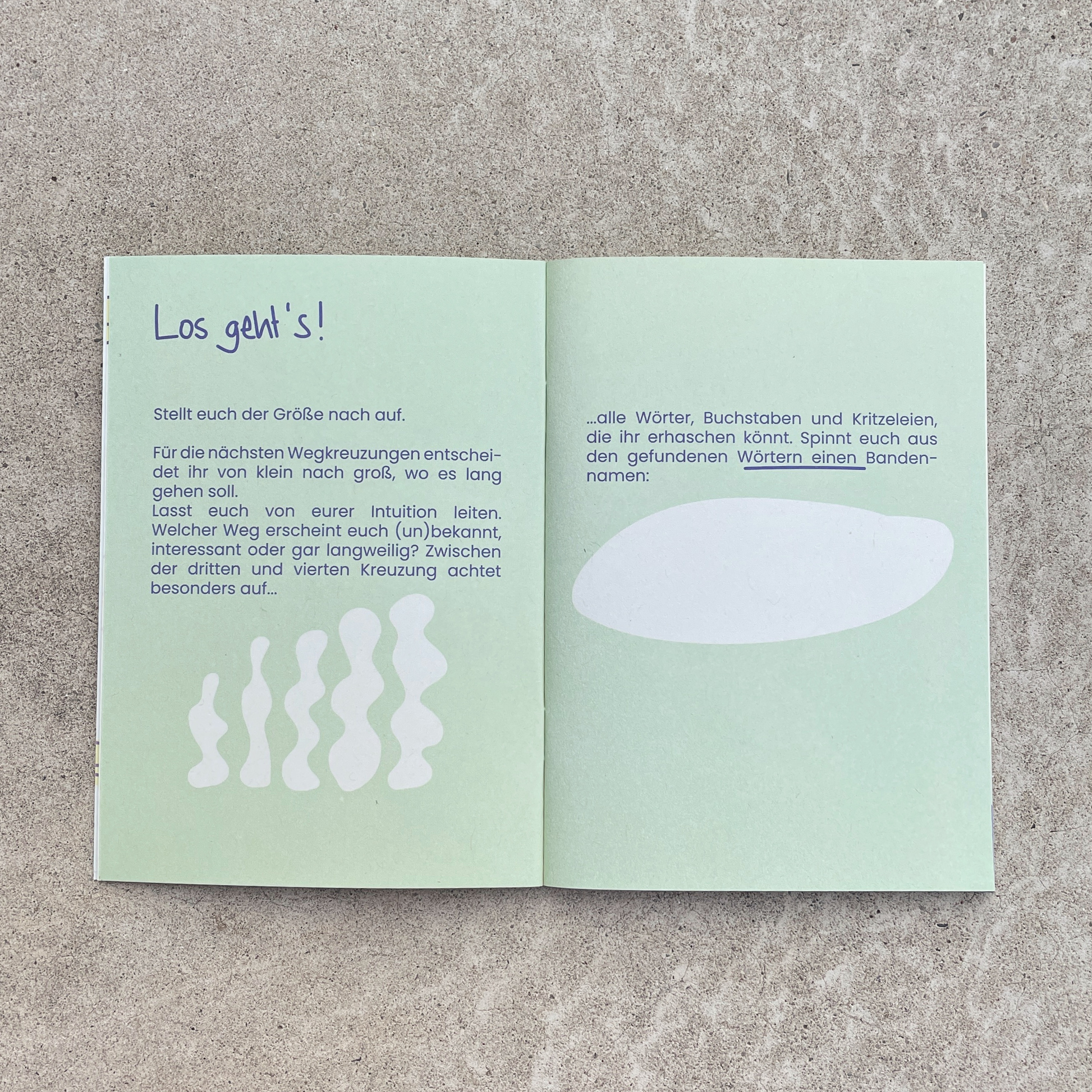 Begebt Euch gemeinsam auf einen Spaziergang der kreativen Art. Seite für Seite führt Euch dieses Heft an neue Orte. Auf dem Weg tauscht Ihr Euch über gemeinsame Erinnerungen aus, sucht nach fast vergessenen Hausnummern und werdet so musikalisch wie Ihr wollt. Ihr könnt von überall starten, solange Häuser und Straßen in der Nähe sind. Von jung bis alt können alle mit abschweifen.